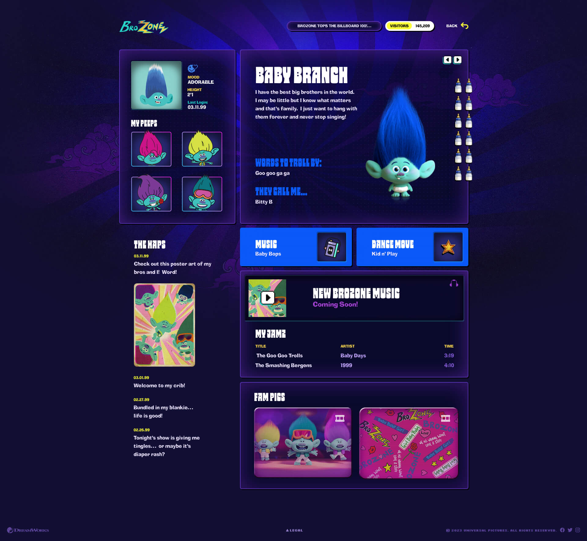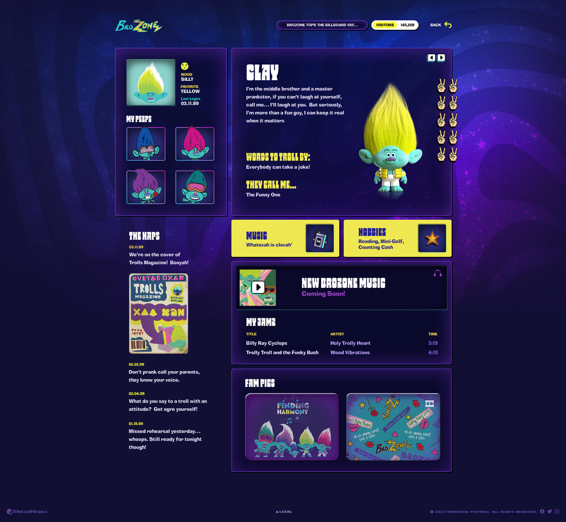 Through humor, interactivity, and strong visual identity, the site would turn first-time visitors into superfans and position BroZone as a breakout franchise extension of the Trolls universe.
