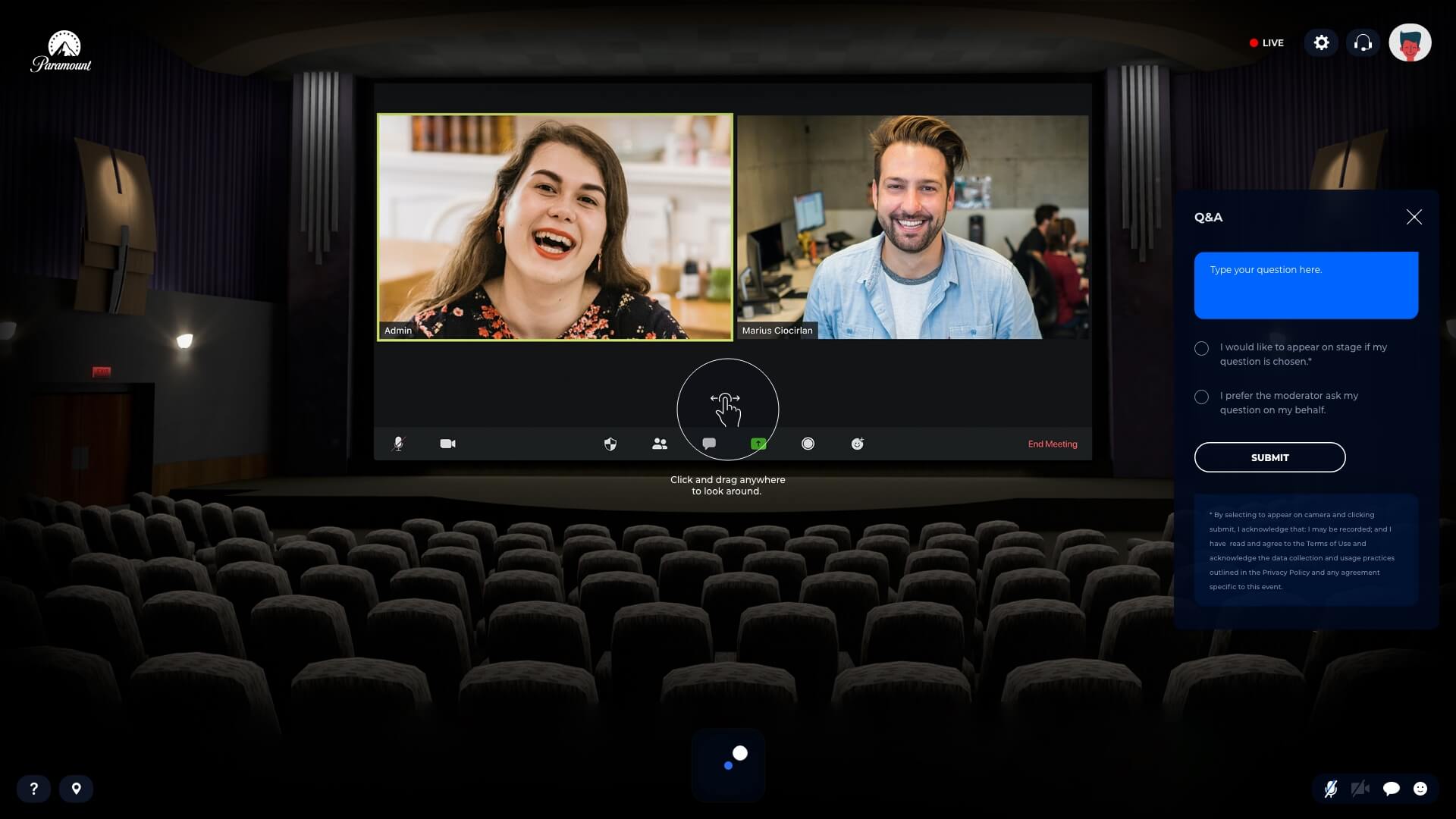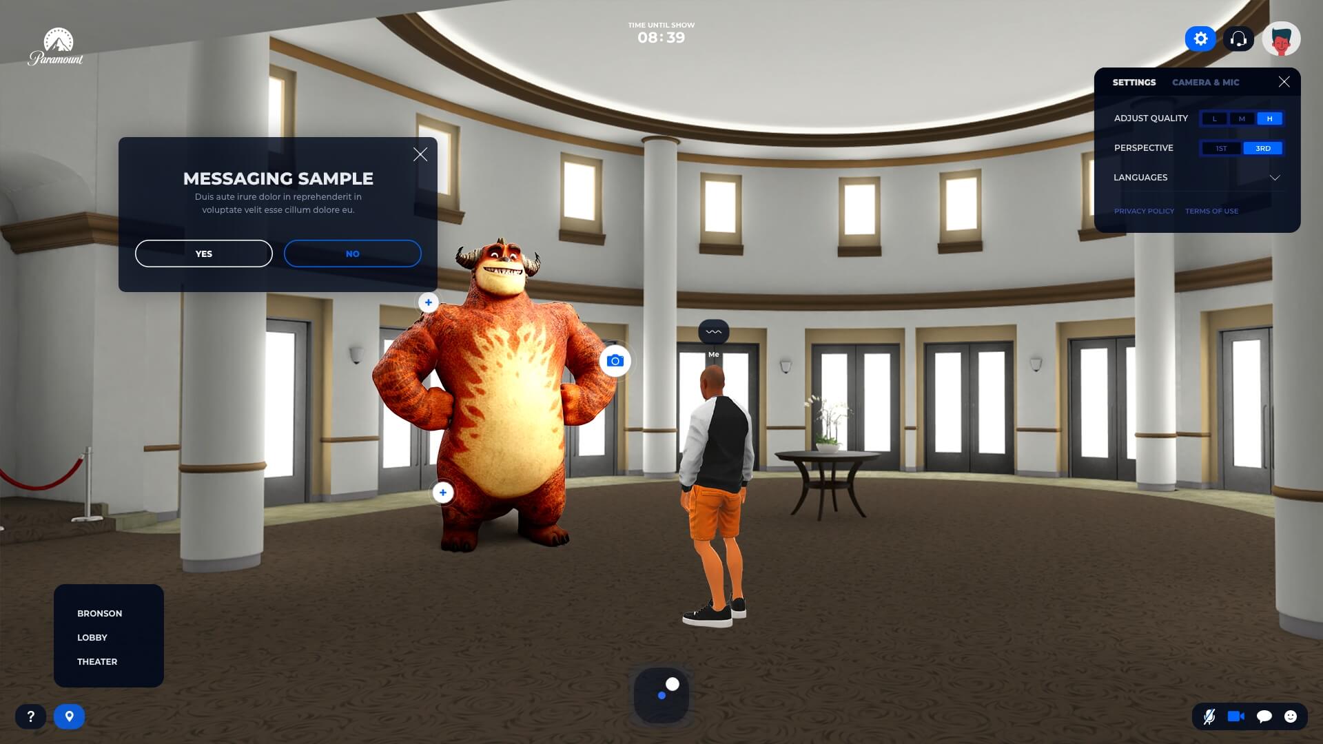 The platform featured a clean, browser-native design that supported immersive, multi-user environments customizable for any event or brand. Its modular UI components—such as chat, user lists, media embeds, and movement controls—are lightweight, intuitive, and easily skinned to match branded experiences. It’s a visually flexible system that balances performance with immersive storytelling for dynamic, fan-facing digital activations.