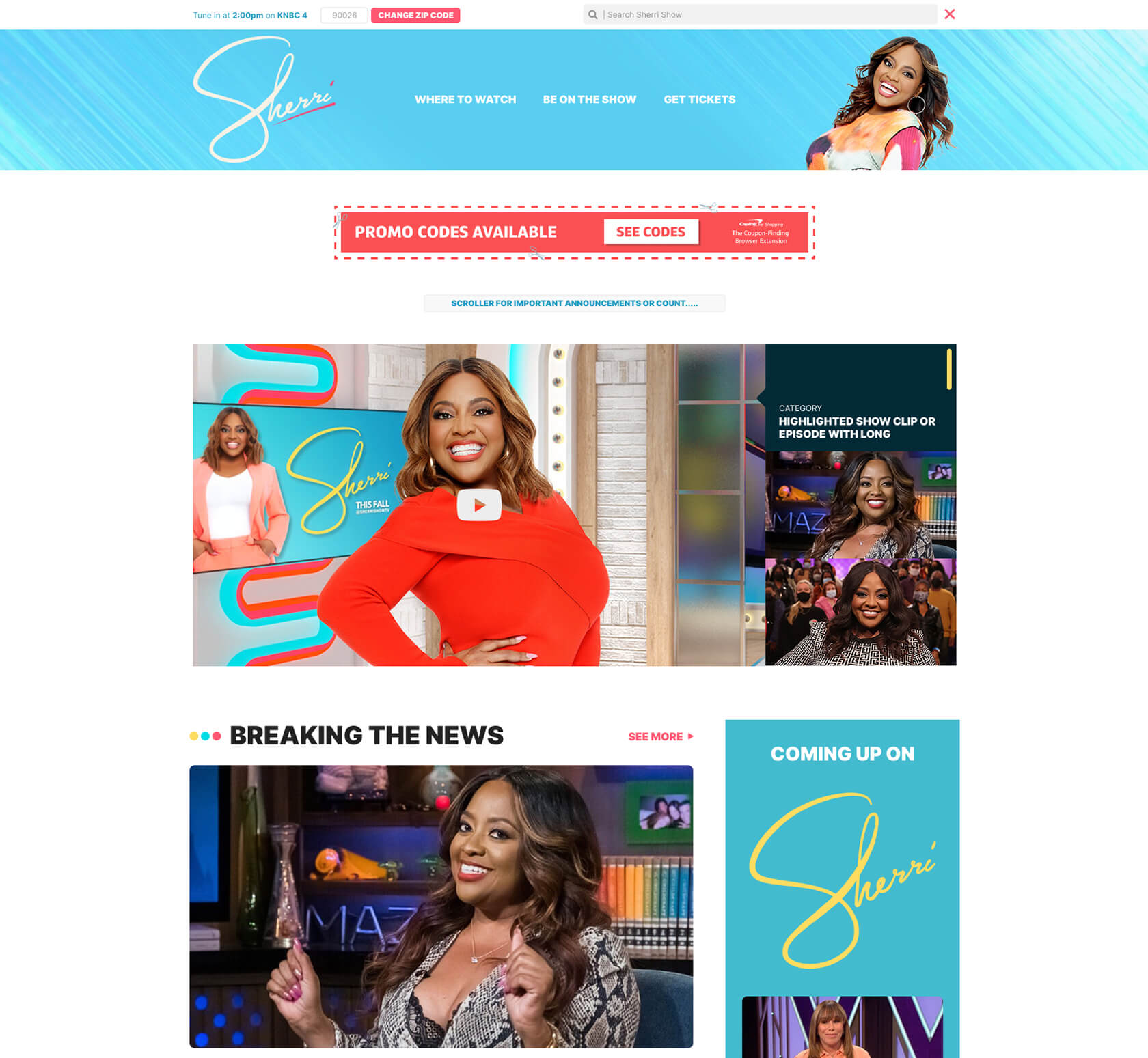 The Sherri Show website features a vibrant, energetic design that mirrors Sherri’s warm personality. With bold colors, friendly typography, and modular layouts, the site highlights video content, social interaction, and fan participation.