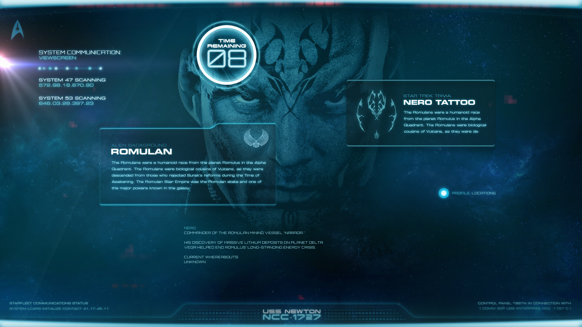 The visual design drew heavily from Star Trek’s iconic aesthetic, particularly the Okudagrams—the signature LCARS-inspired interfaces from the series. We evolved this design language for interactive gameplay, blending bold color blocks, clean geometric layouts, and smooth motion transitions to create an interface that felt futuristic yet intuitive.